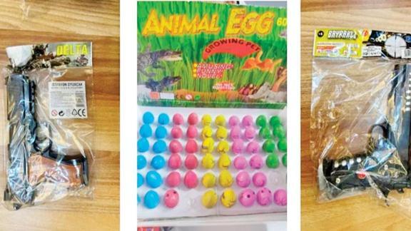 Ekipler tarafından incelenen Uçarlar firmasına ait Çin menşeili suda yüzde 50 büyüyen oyuncağın boğulma riski taşıdığı, Bayraklı Gaming'in ürettiği boncuklu tabancada da kimyasal risk bulunduğu ve Delta markalı boncuklu tabancanın da yine boğulma tehlikesi barındırdığı belirtildi. Üç oyuncak piyasadan toplanacak.