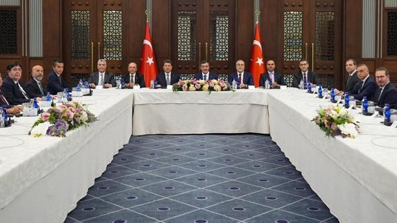 Cumhurbaşkanlığı Külliyesi'ndeki görüşmede, Adalet Bakanı Yılmaz Tunç, Çalışma ve Sosyal Güvenlik Bakanı Vedat Işıkhan, Hazine ve Maliye Bakanı Mehmet Şimşek, Sanayi ve Teknoloji Bakanı Mehmet Fatih Kacır, Ticaret Bakanı Ömer Bolat, Cumhurbaşkanlığı Strateji ve Bütçe Başkanı İbrahim Şenel ve bazı bakan yardımcıları da yer aldı.
