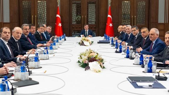 Cumhurbaşkanlığı Külliyesi'ndeki toplantıya, Hazine ve Maliye Bakanı Mehmet Şimşek, Çalışma ve Sosyal Güvenlik Bakanı Vedat Işıkhan, Sanayi ve Teknoloji Bakanı Mehmet Fatih Kacır, Tarım ve Orman Bakanı İbrahim Yumaklı, Ticaret Bakanı Ömer Bolat, AK Parti Grup Başkanı Abdullah Güler, AK Parti Ekonomi İşleri Başkanı Nihat Zeybekci, Cumhurbaşkanlığı Strateji ve Bütçe Başkanı İbrahim Şenel, Türkiye Cumhuriyet Merkez Bankası (TCMB) Başkanı Fatih Karahan, Cumhurbaşkanlığı Yatırım ve Finans Ofisi Başkanı Ahmet Burak Dağlıoğlu ve bazı bakan yardımcıları ile ilgili kurum ve kuruluşların temsilcileri katıldı.