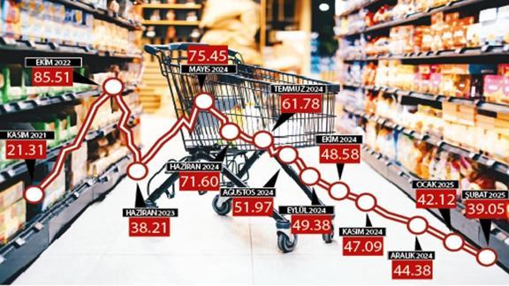 Türkiye İstatistik Kurumu (TÜİK), şubat ayı enflasyon verilerini açıkladı. Buna göre şubat ayında, tüketici fiyat endeksi (TÜFE) yüzde 2.27 oranında artış gösterirken, yıllık enflasyon yüzde 39.05 seviyesine geriledi. Böylece enflasyon 20 ay sonra ilk kez yüzde 40'ın altına gerilemiş oldu. Ekonomistlerin beklentisi şubat ayında TÜFE'nin yüzde 3.00 oranında artması, yıllık bazda ise yüzde 40.03 seviyesine gerilemesi yönündeydi. Şubat ayında yıllık çekirdek enflasyon yüzde 40.21 oldu. Yurt İçi Üretici Fiyat Endeksi (Yİ-ÜFE) ise aylık yüzde 2.12, yıllık yüzde 25.21 olarak açıklandı. 113 temel başlıkta fiyatlar yükselirken 25 temel başlıkta fiyatlar düştü. 5 temel başlıkta ise değişiklik olmadı.
