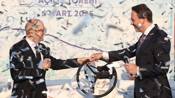 Bayraktar ve Şahbazov, boru hattının vanasını açarak ilk gaz akışını sağladı.