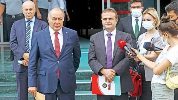 Türk-İş Genel Mali Sekreteri Ramazan Ağar (solda) ve Hak-İş Genel Başkan Vekili Osman Yıldız (sağda) Bakan Bilgin'le görüştükten sonra açıklama yaptı.