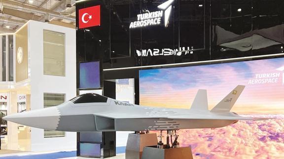 Milli Muharip Uçak KAAN, dünyanın en önemli savunma sanayi etkinliklerinden Suudi Arabistan'daki World Defense Show'da teknolojiyle desteklenmiş yeni konseptle tanıtılıyor. Türk Havacılık ve Uzay Sanayii (TUSAŞ), bu fuarla birlikte tanıtım faaliyetlerine teknoloji ağırlıklı yeni bir konsept ekledi. Daha önceki fuarlarda genel olarak ölçekli hareketsiz maketler kullanılırken bu kez tanıtım için TUSAŞ'ın KAAN ve ANKA III'lerle oluşturduğu OKU (Otonom Kol Uçuşu) konseptinin hareketli sunumu tercih edildi. Arka plandaki led ekranlardaki videoyla senkron şekilde desteklenen konseptle KAAN ve iki yanındaki ANKA III'ler hangardan çıkıp bazı manevralarla taarruz görevi gerçekleştiriyor. TUSAŞ'ın bu yeni tanıtımı ziyaretçilerin oldukça ilgisini çekti. Uçak ayrıca Suudi Arabistan bayrağıyla tanıtıldı. TUSAŞ Genel Müdürü Mehmet Demiroğlu uçağın Suudi Arabistan'a satışıyla ilgili görüşmelerde önemli mesafe alındığını söyledi. Demiroğlu, 50-100 civarı bir satış yapmak istediklerini, S. Arabistan'da üretimin de değerlendirildiğini söyledi.