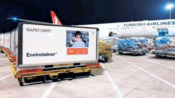 Türk Hava Yolları’nın (THY) kargo markası Turkish Cargo, Çin’den sipariş edilen Kovid-19 aşılarını dünyanın farklı ülkelerine ulaştırmaya başladı. Özel soğutma sistemlerine sahip 7 konteynere yüklenen aşılar, Pekin’den İstanbul aktarmalı olarak Güney Amerika’nın en büyük kenti olan Sao Paulo’ya korunaklı şekilde ulaştırıldı. Turkish Cargo, ocak-eylül ayları arasında da 40 bin tonun üzerinde ilaç, sağlık ürünü, tıbbi ekipman taşıdı ve bu dönemde ilaç taşımalarında yüzde 50’nin üzerinde büyüme kaydetti. Turkish Cargo’nun artan talebe cevap verebilmek için ilave 1200 metrekare alana sahip ısı kontrollü akıllı depoyu devreye aldığı belirtildi. THY Kargodan Sorumlu Genel Müdür Yardımcısı Turhan Özen, “Pandemide aralıksız sürdürdüğümüz iş süreçlerimizle tedarik zincirinin devamlılığına ciddi katkılar sağladık” dedi.