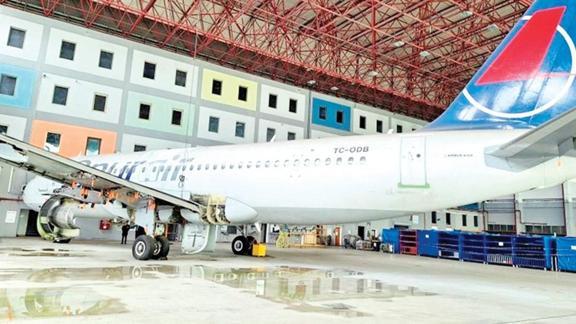1996 model, Airbus A320-232 Atatürk Havalimanı Hangarı'nda park edilmiş halde bekliyor. Uçak motoru, paylan bağlantısı ve apu güç ünitesi bulunmayan uçağın muhammen satış bedeli 92 milyon lira.