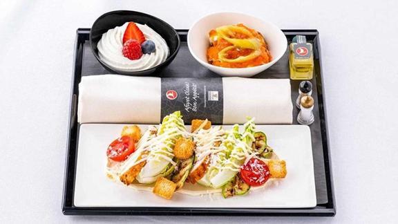 Sağlıklı beslenme trendleri takip edilerek, protein, sebze, meyve ağırlıklı ve daha az karbonhidratlı menüler tasarlayan THY'nin uçuşlarda sunduğu yemekler uzman aşçılar tarafından günlük olarak, en taze ürünlerle butik üretiliyor.