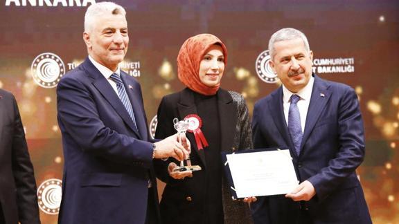 Merve Kantarcı Çulha, ödülünü Ticaret Bakanı Ömer Bolat'tan aldı.