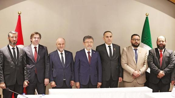 Suriye'nin başkenti Şam'da resmi temaslarda bulunan Tarım ve Orman Bakanı İbrahim Yumaklı, Suriye Tarım ve Tarım Reformu Bakanı Emced Bedr (sağ 3) ile heyetler arası görüşme gerçekleştirdi.