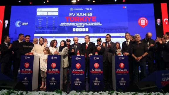 "500 bin sosyal konut projemizin öncelikle ülkemize ve milletimize hayırlı olmasını Cenab-ı Hakk'tan niyaz ediyorum. 24 Ekim'de lansmanı yapılan o sosyal konut projemizin bugün Eskişehir ayağının kur'a çekimini hep birlikte gerçekleştireceğiz. Öncelikle hayırlı olmasını Cenab-ı Hakk'tan niyaz ediyorum. Kur'ada ismi çıkacak olan vatandaşlarımız için şimdiden hayırlı olmasını niyaz ediyorum. İsmi çıkmayacaklar için TOKİ Başkanımız da müjdeyi, daha önce Cumhurbaşkanımız da, kıymetli Bakanımız Murat Kurum bey de verdi. İnşallah onlar için de yine bu projeler devam edecektir. Hiçbir vatandaşımız, kardeşimiz evsiz kalmayana kadar inşallah. Hepimizi ağlatan 6 Şubat 2023 'asrın felaketi' dediğimiz; 11 ilimizi, 100'den fazla ilçemizi, binden fazla köyümüzü etkileyen ve yıkıma sebep olan, kayba sebep olan depremi hep birlikte yaşadık. Bir kez daha o depremde hayatını kaybeden vatandaşlarımızı rahmetle yad ediyorum; ruhları şad olsun, mekanları cennet olsun. Ama devletimiz, Cumhurbaşkanımızın riyasetinde, ilgili kurum ve kuruluşlarımızın, bakanlıklarımızın özverili çalışmalarıyla 3 yıl gibi kısa bir sürede 455 bin konutu teslim etti elhamdülillah."
