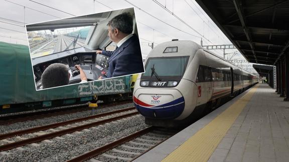Edirne Garı'na gelen Sezer, basın mensuplarıyla birlikte, test sürüşleri devam eden hızlı trene bindi.
