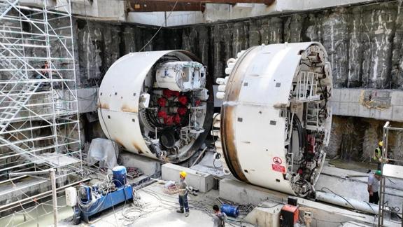 Büyükşehir Belediyesinden yapılan açıklamaya göre, çalışmalar kapsamında tünel açma makinelerinden ikisi Seka Devlet Hastanesi İstasyonu'na getirildi.