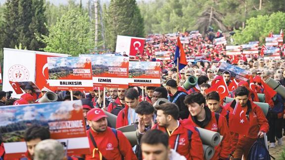Çanakkale Kara Savaşları'nın 110. yıldönümü dolayısıyla '57. Alay Vefa Yürüyüşü' yapıldı. Türkiye'nin 53 ili ve 15 farklı ülkeden gelen 2 bin 750 izci ile izci lideri, 57. Alay'ın karargah olarak kullandığı Eceabat'taki alanda kamp yaptı. Sabah ezanıyla birlikte uyanan gençler, 57. Alay askerlerinin son yemeği olan kırık buğday çorbasını içtikten sonra yola koyuldu. Yarbay Mustafa Kemal'in 25 Nisan 1915 sabahı düşman çıkarmasını haber alınca "Size savaşmayı değil, ölmeyi emrediyorum" diyerek 57. Alayı Conkbayırı'na gönderdiği tarihi yürüyüş, bir kez daha canlandırıldı. Mehter takımı eşliğinde Türk bayraklarıyla yola çıkan izcilere subay ve astsubay öğrencileri de eşlik etti. 57. Alay'ın 110 yıl önce geçtiği rotayı takip eden katılımcılar, savaşın yaşandığı cepheleri de ziyaret etti. 5 kilometrelik yürüyüş, Conkbayırı'nda sona erdi. w
