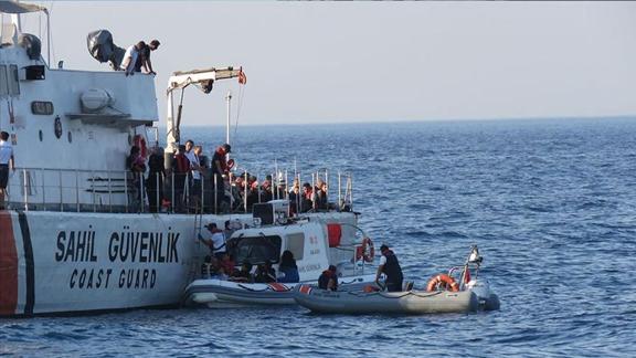 Bölgeye sevk edilen "KB-119" botu ekipleri, lastik bottaki Afganistan uyruklu 12'si çocuk 28 düzensiz göçmeni kıyıya çıkardı.