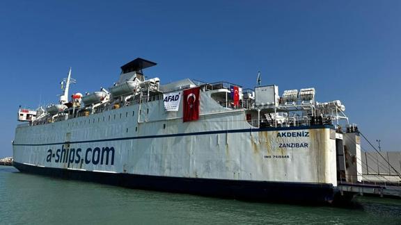 Afet ve Acil Durum Yönetimi Başkanlığı (AFAD) koordinasyonunda Gazze için hazırlanan quot;14. İyilik Gemisiquot; Mısır'ın El-Ariş Limanı'na yanaştı.