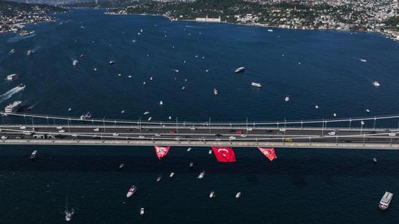 15 Temmuz Demokrasi ve Milli Birlik Günü, 253 tekne ve botun İstanbul Boğazı'nı selamladığı anlarda 15 Temmuz Derneği Genel Sekreteri Kaan Şahin, günün anlam önemine ilişkin açıklamalarda bulundu. Şahin, "Hain FETÖ darbe girişiminin üzerinden tam 9 yıl geçti. O gece sokaklarda milletimizin direnişine hep birlikte iştirak ettik. Bana ne gazilik ne şehitlik nasip oldu. Ancak bu aziz milletin cesaretini hep birlikte gözlerimizle şahit olduk. Bugün aziz şehitlerimizin ruhu için 253 şehidimizin ruhu için İstanbul Valiliğimiz ve Sahil Güvenlik Komutanlığı'mız ile koordine ettiğimiz 15 Temmuz Derneğimizin şehit ailelerimizle ve gazilerimizle birlikte iştirak ettiğimiz İstanbul Boğazı'nda bayrak kortejine sizlerin de katılımı bizi onurlandırmıştır" diye konuştu.