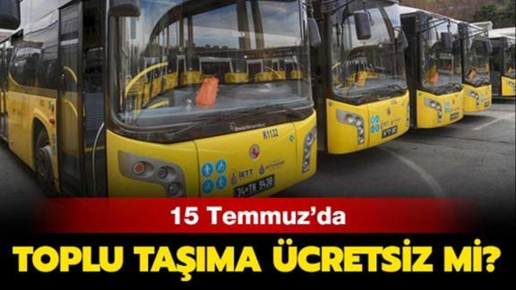 Milyonlarca İstanbullu, 15 Temmuz Milli Birlik ve Demokrasi Günü toplu taşımın ücretsiz olup olmadığını araştırmaya başladı. Vatandaşlar ‘15 Temmuz’da İstanbul’da toplu taşıma ücretsiz mi?’ ‘15 Temmuz'da otobüs, metro, marmaray ücretsiz mi?’ sorularına yanıt arıyor. İstanbul Büyükşehir Belediye Meclisi (İBB) 15 Temmuz günü toplu taşımalar ile alakalı açıklama yaptı. 15 Temmuz Milli Birlik ve Demokrasi Günü resmi tatil olarak belirlendi. Ayrıntılara haberimiz içerisinden ulaşabilirsiniz