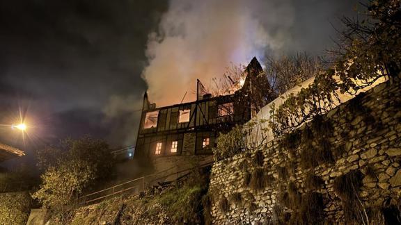 Yangında yaklaşık 150 yıllık olduğu belirtilen konak kullanılamaz hale geldi.