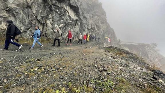 Yoğun sis ile yağmurun da etkili olduğu güzergahta yürüyüşlerini sürdüren ekip, yaklaşık 15 kilometre katetti.
