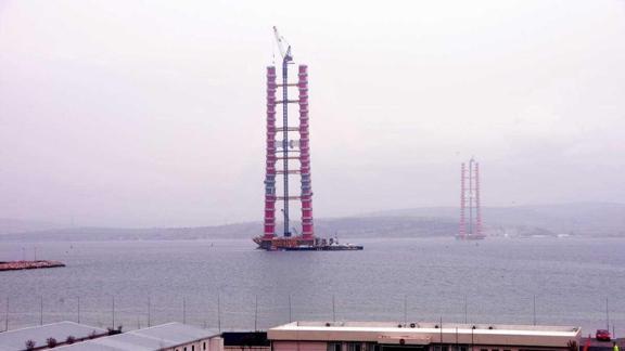Çanakkale Boğazı'nda, Gelibolu'nun Sütlüce ve Lapseki'nin Şekerkaya mevkileri arasına yapılan 1915 Çanakkale Köprüsü'nün temeli, 18 Mart 2017'de Cumhurbaşkanı Recep Tayyip Erdoğan tarafındandan atıldı. Hemen ardından Sütlüce'de kurulan şantiyede, kuru havuzda neredeyse her biri birer futbol sahası büyüklüğündeki iki kule kesonu inşa edildi. Denizin dibine çakılan demir kazıkların üzerine geçen yıl Mayıs ayında batırılan kule kesonları üzerine ilk bloklar ise Ağustos ayında konuldu ve kırmızı beyaz renkleriyle Türk bayrağını simgeleyen köprü ayakları yükselmeye başladı.