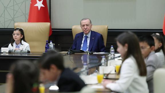 Başkan Recep Tayyip Erdoğan, 23 Nisan Ulusal Egemenlik ve Çocuk Bayramı dolayısıyla Cumhurbaşkanlığı Külliyesi'nde Milli Eğitim Bakanı Yusuf Tekin ve beraberindeki çocukları kabul etti.