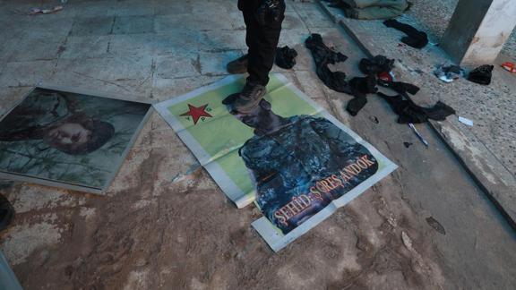 Bölgede gelişmeleri takip eden 24 TV ekibi, Suriye Milli Ordusu'nun (SMO) Özgürlük Şafağı Operasyonu'yla terör örgütü PKK/YPG işgalinden kurtardığı Tel Rıfat'a terör örgütü PKK/YPG'nin kadın eğitim merkezine girdi.