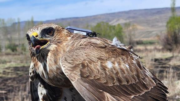 KuzeyDoğa ekibi, 9 Nisan 2023'te ağlara takılan bir bozkır şahinine uydu vericisi takarak doğal ortamına saldı.
