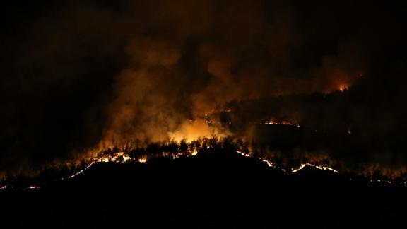 Ekipler yangını havadan ve karadan müdahaleyle kontrol altına almaya çalışıyor.