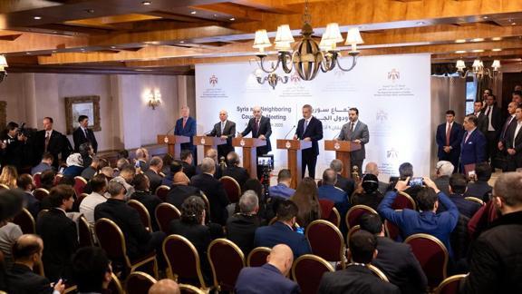 Türkiye, Ürdün, Irak, Lübnan ve Suriye'den diplomatik, askeri ve istihbari üst düzey temsilcilerin Ürdün'ün başkenti Amman'da düzenlediği Suriye ve Komşu Ülkeler Toplantısı'nın ardından ortak bildiri yayımlandı.