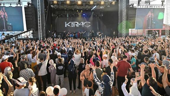 Etnospor Kültür Festivali'ne katılan ziyaretçiler Kıraç konserini takip ederken şarkılara eşlik etti.