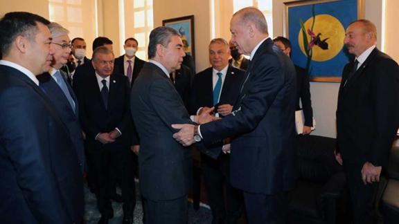 Başkan Erdoğan, Demokrasi ve Özgürlükler Adası'nda düzenlenecek Türk Konseyi 8. Zirvesi kapsamında İstanbul'da bulunan üye ülkelerin devlet başkanları ile açılış töreni için Sultanahmet'teki Türk Konseyi Genel Sekreterliği binasında bir araya geldi.