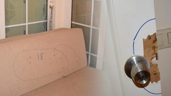 Suikast timinin saldırısı sırasında çatışmanın yaşandığı otel odasında darbecilere karşı koyan bir koruma polisine ait kelepçe, kan izleri bulunan yatağın üzerinde dururken bir kanepenin üzerinde 18 kurşun izi dikkatleri çekiyor.