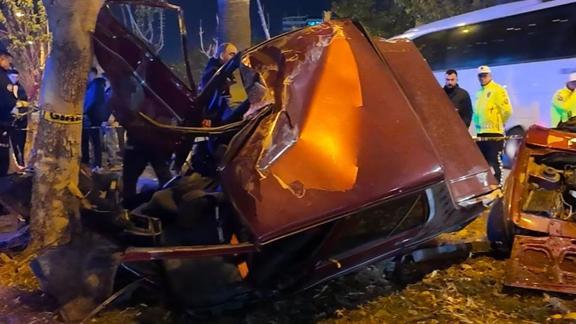 ADANA (AA) - Adana'nın merkez Seyhan ilçesinde ağaca çarpan otomobildeki 2 kişi öldü, 1 kişi yaralandı.