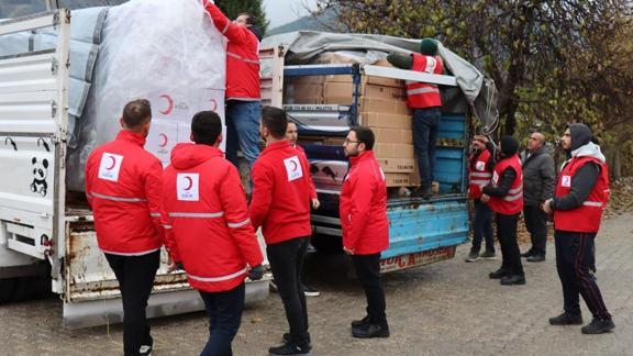 Türk Kızılay, kış yardımları kapsamında Adıyaman'da depremzedelere giysi ve malzeme desteğinde bulundu.