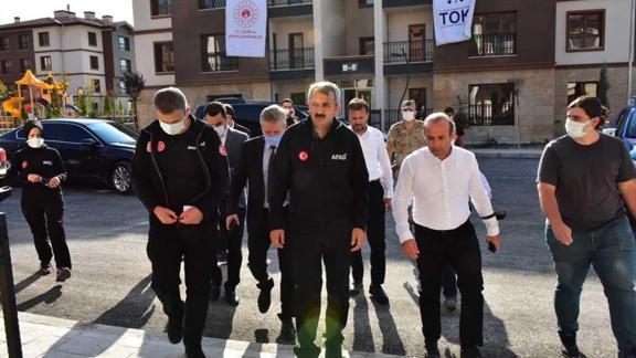 Afet ve Acil Durum Yönetimi (AFAD) Başkanı Yunus Sezer, 2020 yılında meydana gelen Elazığ merkezli deprem sonrası Malatya'da inşa edilen deprem konutlarını gezdi.