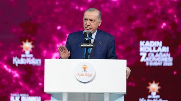 Erdoğan, partisinin Ankara Spor Salonu'nda düzenlenen AK Parti Kadın Kollarının 7. Olağan Kongresi'ne katıldı.