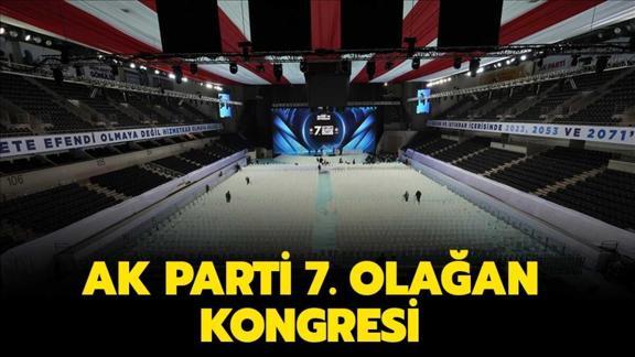 AK Parti'nin 7. Olağan Büyük Kongresi bugün yapıldı. Kongre saat 10:00'da başladı. Salgın nedeniyle kongreye, yurt dışından konuk çağırılmazken, kısıtlı sayıda sivil toplum kuruluşu temsilcisi, engelli ile gazi ve şehit yakınları davet edildi.