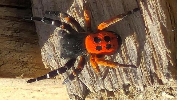 Parlak kırmızı karın yapısı ve siyah noktalara sahip olan örümcek, görüntülendi. Akdeniz ve Orta Asya'da yaşayan bu tür, Avrupa'da nesli tehlike altında olan türler arasında yer alıyor.