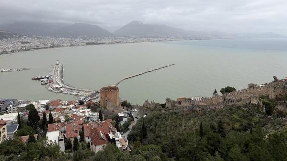 Keykubat ve Soğuk Kapı plajları ile Alanya Balıkçı Barınağı'nda deniz farklı renklere büründü.