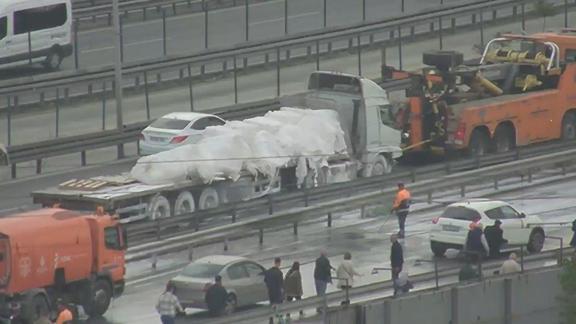 Zeytinburnu'nda tırın dorsesindeki toz alçının yola dökülmesi sonucu D-100 kara yolunun Ankara istikameti bir süre trafiğe kapandı.