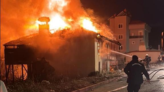 Antalya'nın Kemer ilçesinde yangın çıkan ev, kullanılamaz hale geldi.