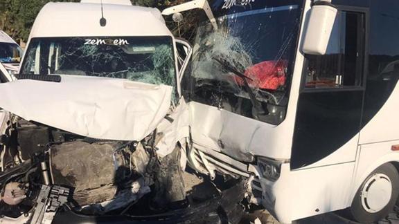 Yukarıkocayatak Mahallesi Küme Evleri mevkisinde İ.Y. idaresindeki 07 C 82165 plakalı öğrenci servisi ile Mahmut Y'nin kullandığı 50 MA 1645 plakalı işçi taşıyan minibüs çarpıştı.