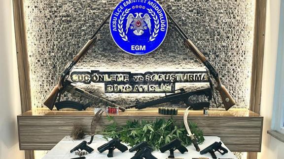 Toprağa ekili bir miktar hint keneviri, ruhsatsız 6 tabanca, 4 tüfek, 191 fişek ve 4 kesici aletin ele geçirildiği operasyonda, 9 şüpheli gözaltına alındı.