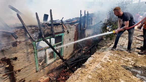 Bazı evlere sıçrayan yangının söndürülmesi için ekiplerin çalışması sürüyor.