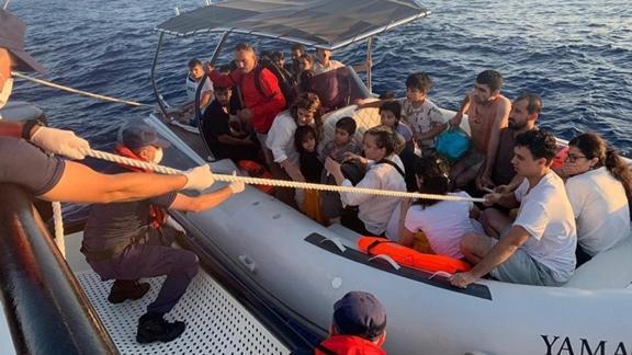Ekipler tarafından bottaki 20'si çocuk 35 düzensiz göçmen kurtarıldı.