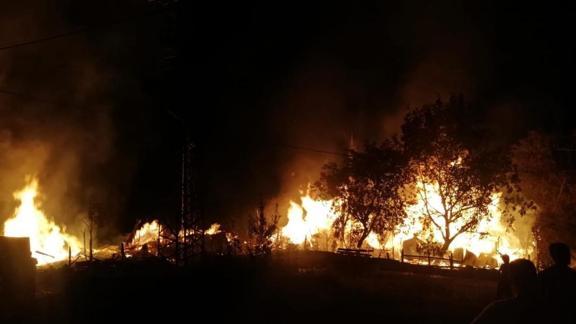 Ekipler, kısa sürede engebeli arazinin yaklaşık 5 dönümüne yayılan ve ara ara küçük çaplı patlamaların meydana geldiği yangını söndürmek için çalışmalarını sürdürüyor.