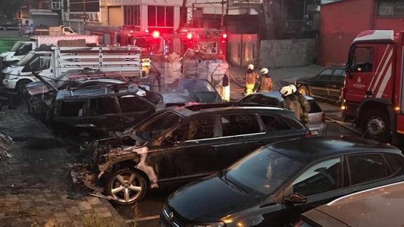 Bostancı Sanayi Sitesi'nde dün hurda araçların çekildiği alanda çıkan yangın, bir otelin açık otoparkındaki araçlara da sıçramıştı.