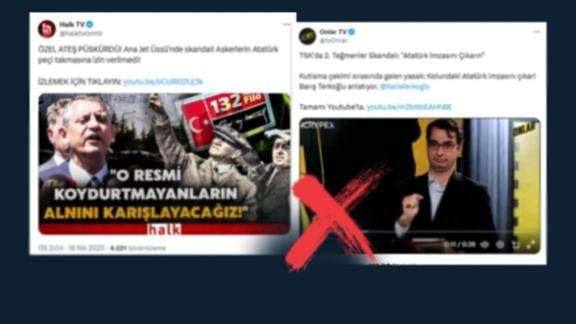 Dezenformasyonla Mücadele Merkezi (DMM), CHP'ye yakınlığıyla bilinen Halk TV'nin yalanını ifşa etti. DMM, "Bir Astsubay Başçavuş, Atatürk imzası olduğu için pilotların kolundaki peçleri çıkarmak istedi" iddiasının doğru olmadığını açıkladı.