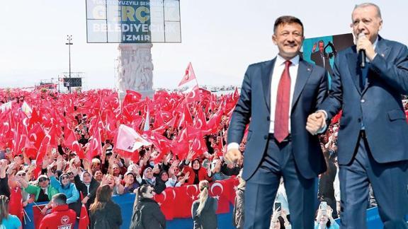 Seçim çalışmalarına hız veren Başkan Recep Tayyip Erdoğan, partisinin İzmir Gündoğdu Meydanı'nda düzenlenen mitinginde, vatandaşlara hitap etti. Meydandaki 100 bin kişiye seslenen Başkan Erdoğan, İzmir'in, Milli Mücadele'nin zafer şehri, milli iktisadın ilham şehri, Anadolu'nun bereket kapısı, Ege'nin incisi olduğunu belirti. İzmir'in yaralarını sarmaya 20 gününün kaldığını hatırlatan Erdoğan, "Durmayacağız. 31 Mart akşamı İzmir bir başka güzel olacak" diye konuştu.