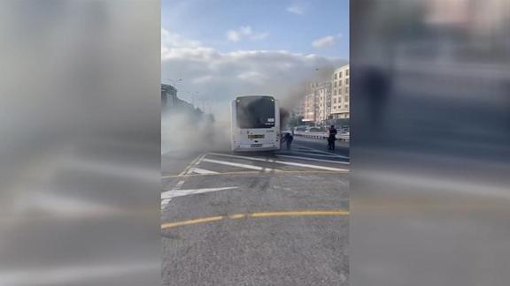 Yolcular araçtan tahliye edilirken, yangın ekiplerinin müdahalesiyle söndürüldü.