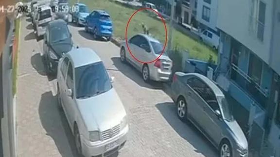 Öte yandan olay anı çevredeki güvenlik kamerasınca kaydedildi. Görüntülerde köpeklerin kovaladığı E.Ö'nün kaçarken yere düşmesi ve kafasını park halindeki otomobilin ön kısmına çarpması yer alıyor.